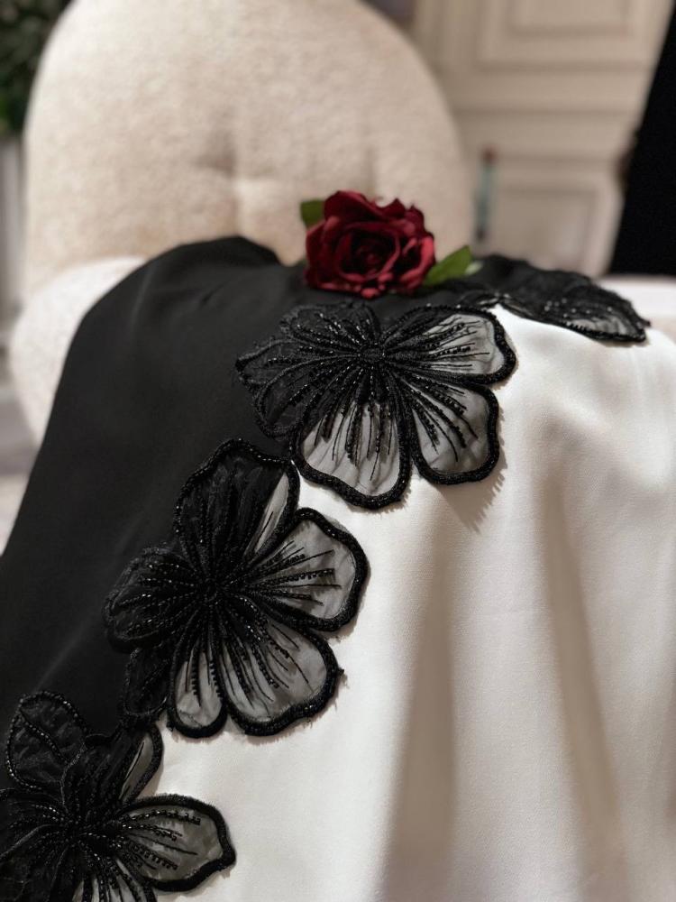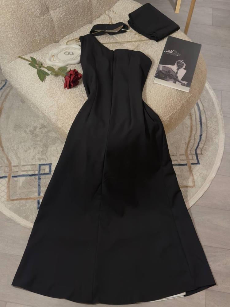 فستان الهبة الانيق لون اسود مورد ثلاث قطع مع سكري