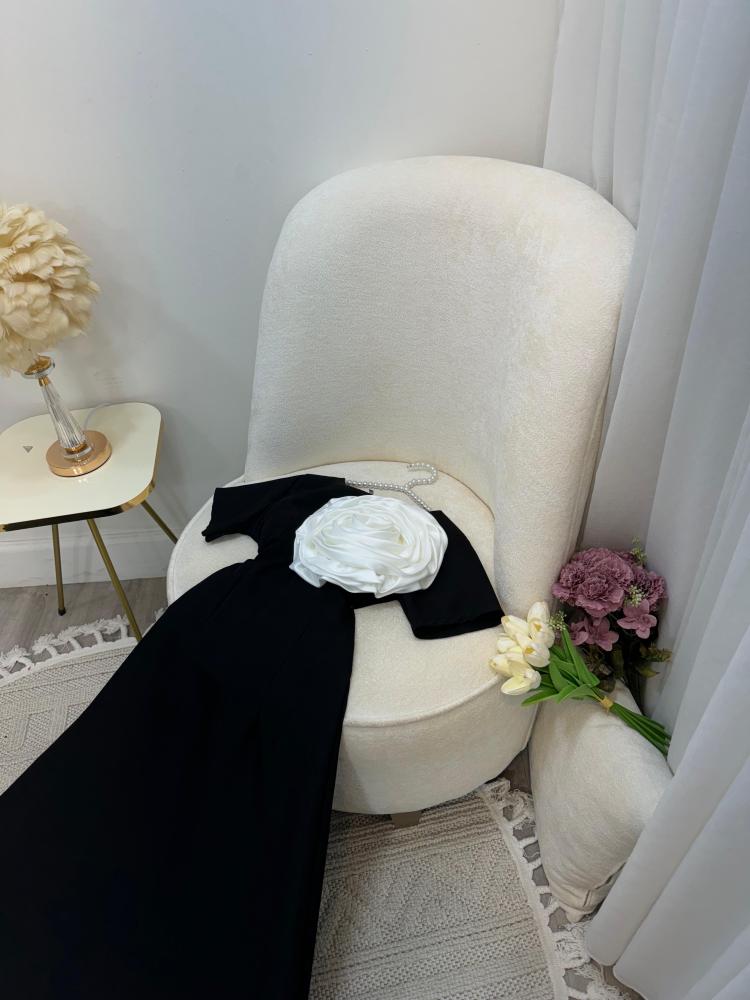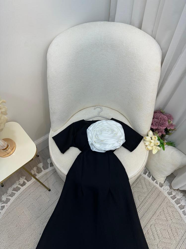 فستان العيد اسود مع ورده فخمه