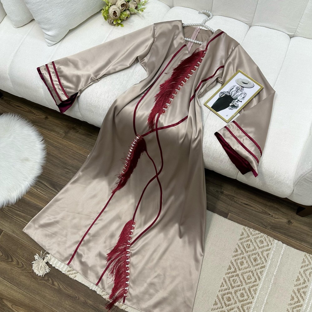 المميزات : فستان الهبة عصري في تصميمها حتى تتواكب مع الأزياء العصرية والموضة الحديثة . تم حياكتها من خامات عالية الجودة والتصنيع خفيفة على البشرة وناعمة . فستان مريح في الارتداء ويمكنك ارتداؤها لفترة طويلة . مناسبة لكل الاوقات والاماكن الخاصة واستقبال الضيوف المهمين