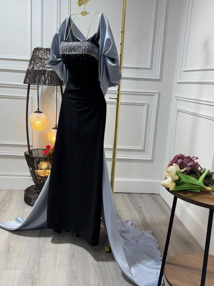 فستان اسود مع رصاصي