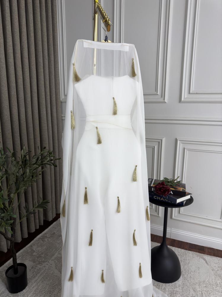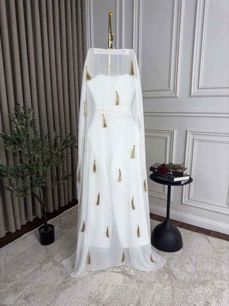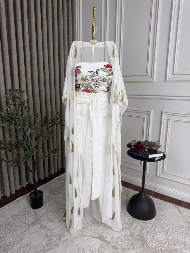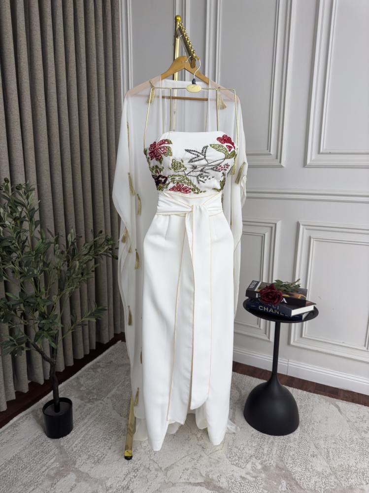 جمبسوت أبيض بتطريز زهور فخم