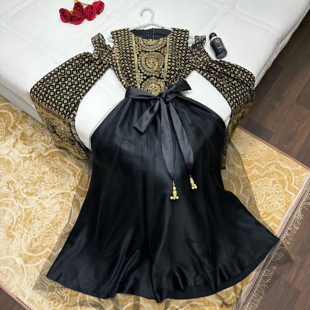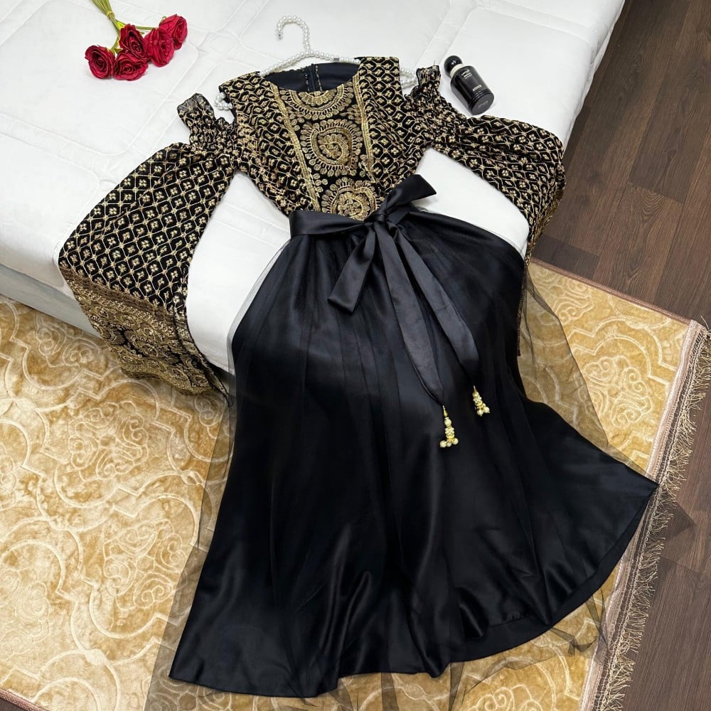 فستان اسود راقي بتطريز كمبيوتر كامل