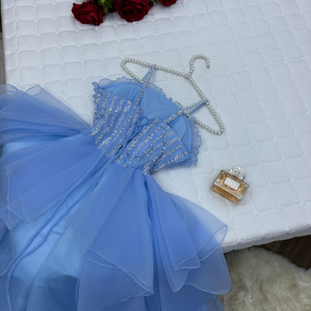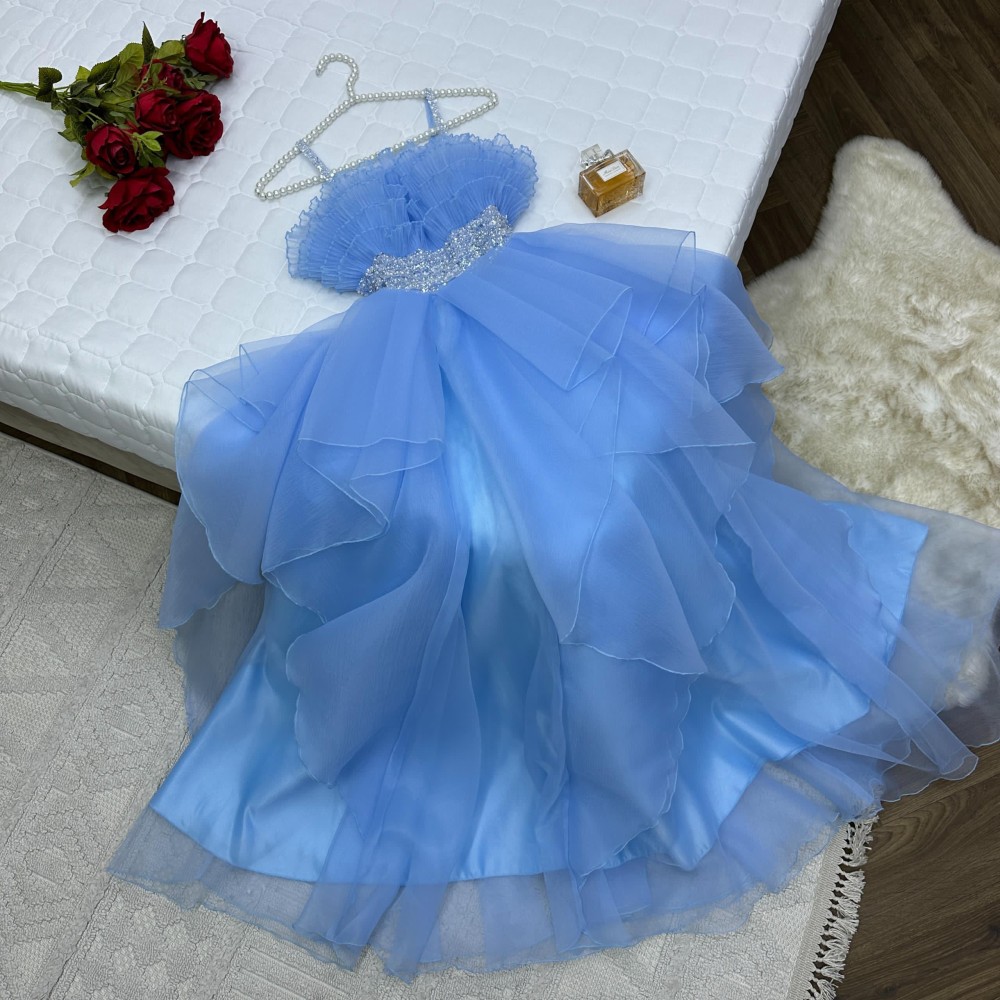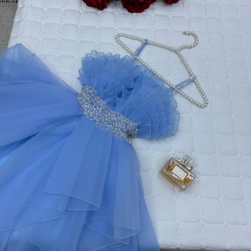 فستان سهره سماوي انيق وراقي بدون عارضه